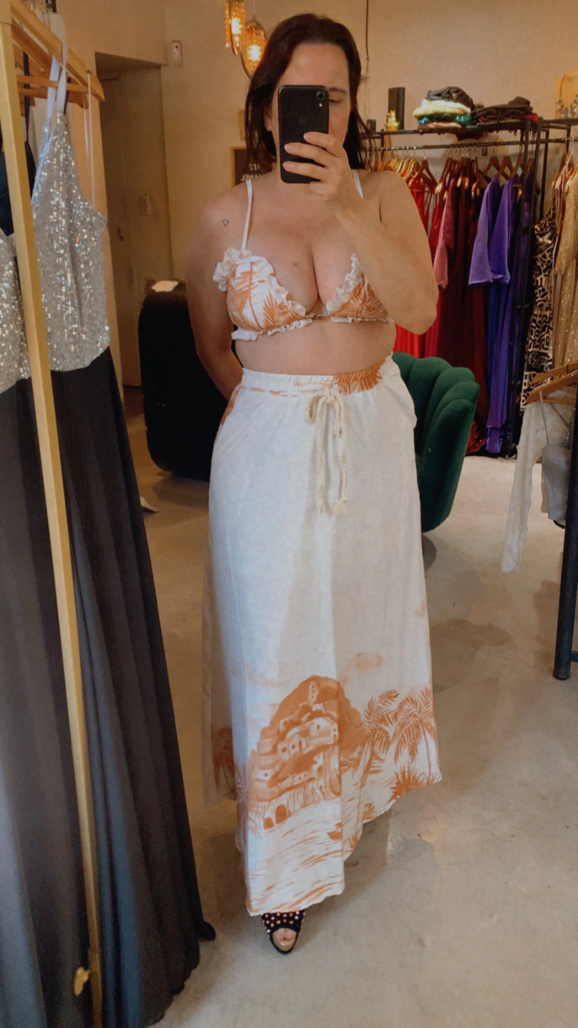 Descubrí el encanto y la comodidad del Conjunto Saona, un diseño pensado para resaltar tu estilo con elegancia y frescura. Este conjunto incluye una falda larga estampada con elástico interno en cintura, y bolsillos ,que ofrece un ajuste perfecto y un corte evasé que realza tu figura con movimiento y sofisticación.
