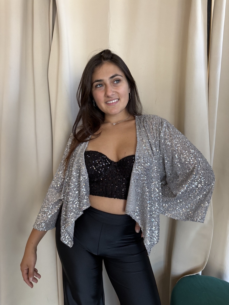 ¿Querés deslumbrar con un look elegante y sofisticado? La Torera Paellete es ideal para vos. Confeccionada en paillette y con manga 3/4, esta torera destaca por su brillo y estilo único. Perfecta para combinar con un vestido o una camisa, agregando un toque de glamour a tu outfit. Ya sea para una fiesta especial o una salida nocturna, esta torera es la elección perfecta para lucir radiante. Consultá la tabla de talles para asegurarte de elegir el ajuste adecuado. ¡Atrévete a brillar con la Torera Paellete!