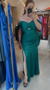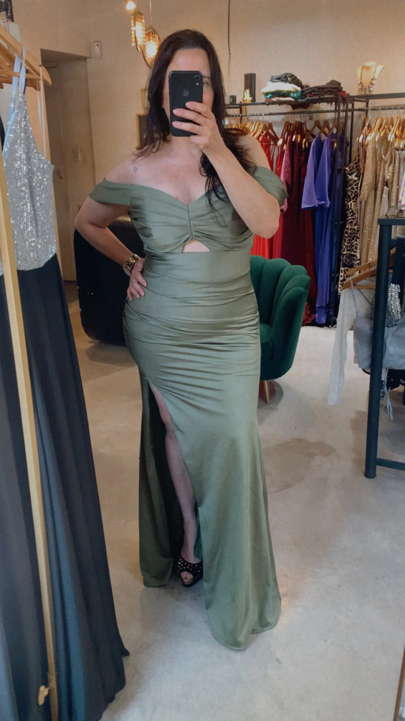 Su diseño único incluye un corsete en forma de moño que aporta un detalle femenino y delicado, mientras que las mangas caídas con tajo le dan un toque moderno y distintivo. Con un largo total de 150 cm, es ideal para eventos donde quieras destacar con estilo y presencia.