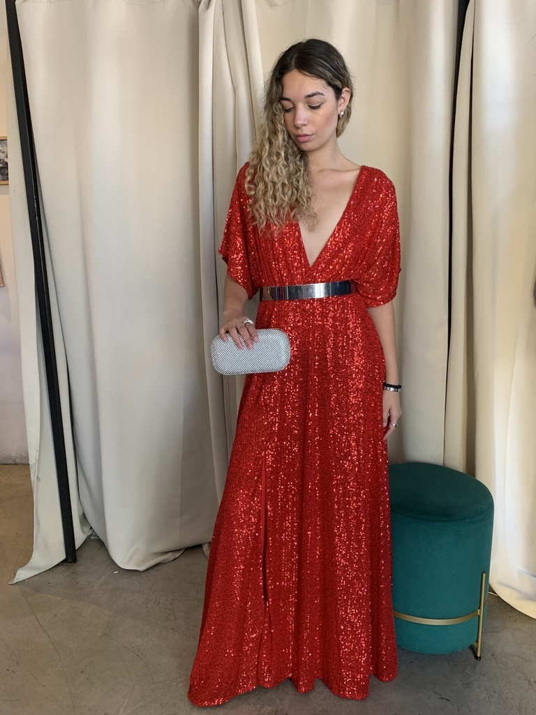 Descubrí el Vestido Selva Paellette: una prenda confeccionada en paillette, forrada en jersey, que combina elegancia y comodidad. Con manga corta y un escote en V cruzado, este vestido se adapta a diversas ocasiones. La falda evasé con tajo aporta un toque distintivo, mientras que su largo total de 150 cm desde el hombro hasta el ruedo asegura un look sofisticado. No olvides consultar la tabla de talles para encontrar tu medida ideal.